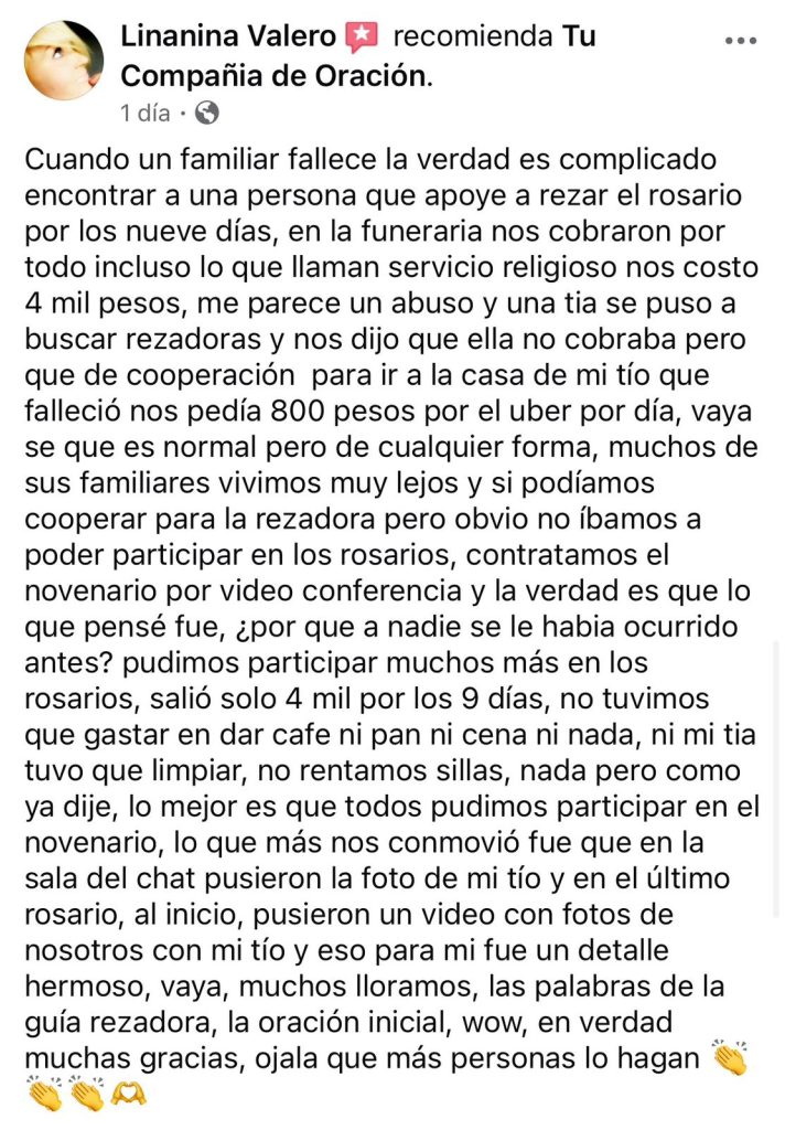 Ya no tienes que rezar en soledad si no lo quieres, tampoco tienes que preocuparte por quién rezará el rosario para la defunción de un ser querido ni por quién rezará por ti cuando tú no puedas hacerlo o ya no estés, con nuestra tecnología podemos llegar a todas las personas, solo requieren un celular, computadora o tableta digital y acceso a internet.