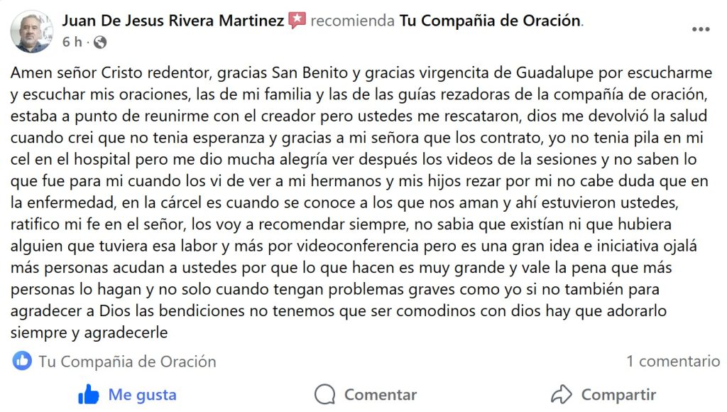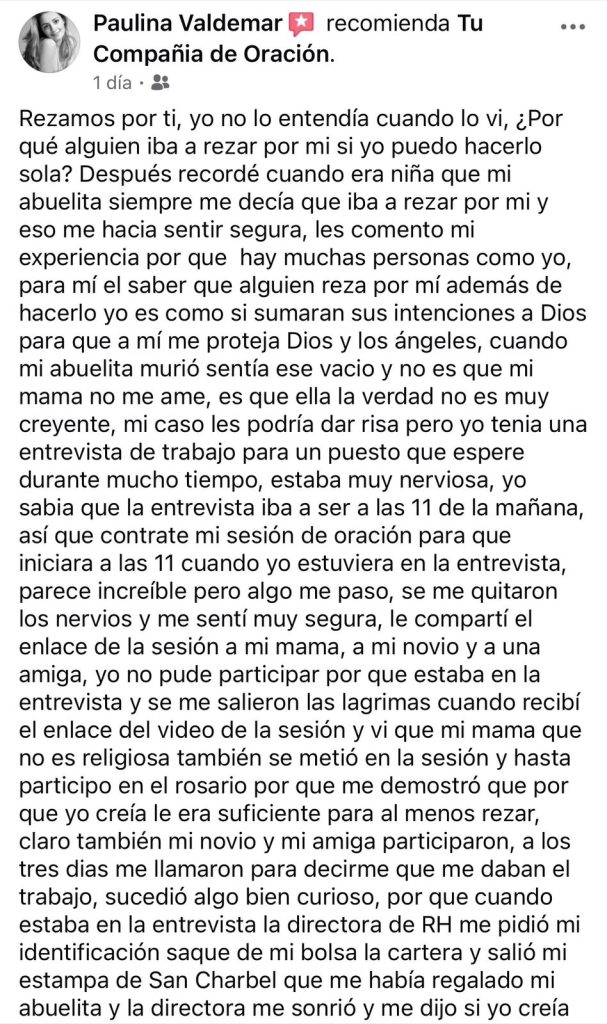 Si requieres de más información, contamos con una línea de atención en WhatsApp en el número 56 4409 3031 y correo electrónico contacto@tucompaniadeoracion.com o si lo deseas puedes ingresar al siguiente enlace: