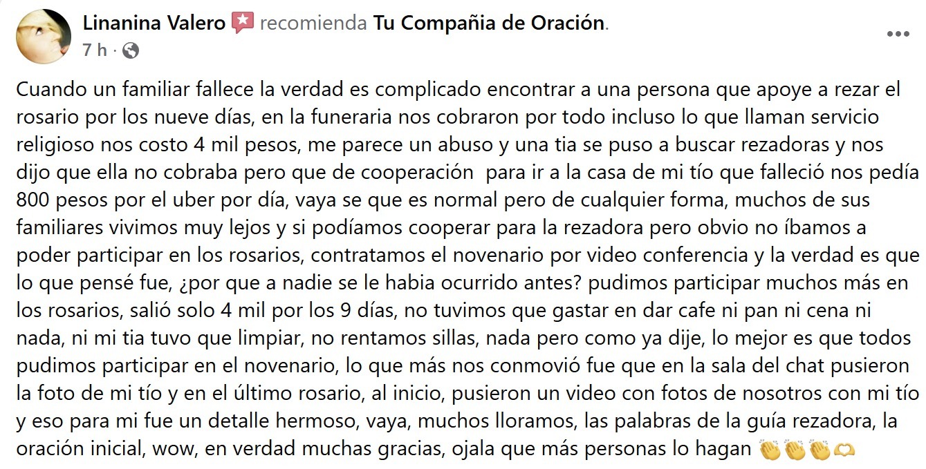 Su servicio no solo es una oración: es consuelo, es acompañamiento, es presencia y es esperanza.